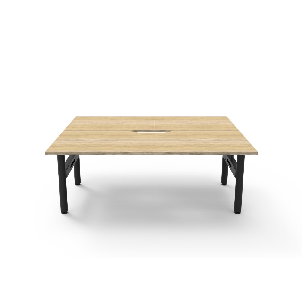 Natural Oak top Black Satin frame. Overall Dimensions: 1800mW x 1500D x 730mmH. Per User Dimensions: 1800W x 750D x 730mmH. E0 rated 25mm top with rigid edging and 50mm diameter scallop cut out to rear. Powder coated underframe. Adjustable levelling feet. Can be customised with optional accessories like cable management solutions and privacy screens. 10 Year Manufacturer's Warranty. Delivery, installation and assembly charges may apply to furniture. Please enquire to confirm.