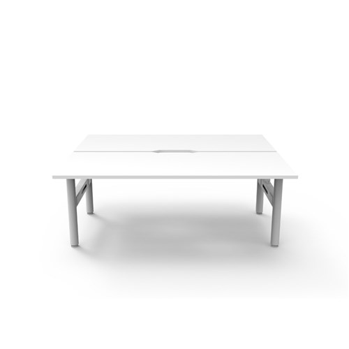 Natural White top White Satin frame. Overall Dimensions: 1800mW x 1500D x 730mmH. Per User Dimensions: 1800W x 750D x 730mmH. E0 rated 25mm top with rigid edging and 50mm diameter scallop cut out to rear. Powder coated underframe. Adjustable levelling feet. Can be customised with optional accessories like cable management solutions and privacy screens. 10 Year Manufacturer's Warranty. Delivery, installation and assembly charges may apply to furniture. Please enquire to confirm.