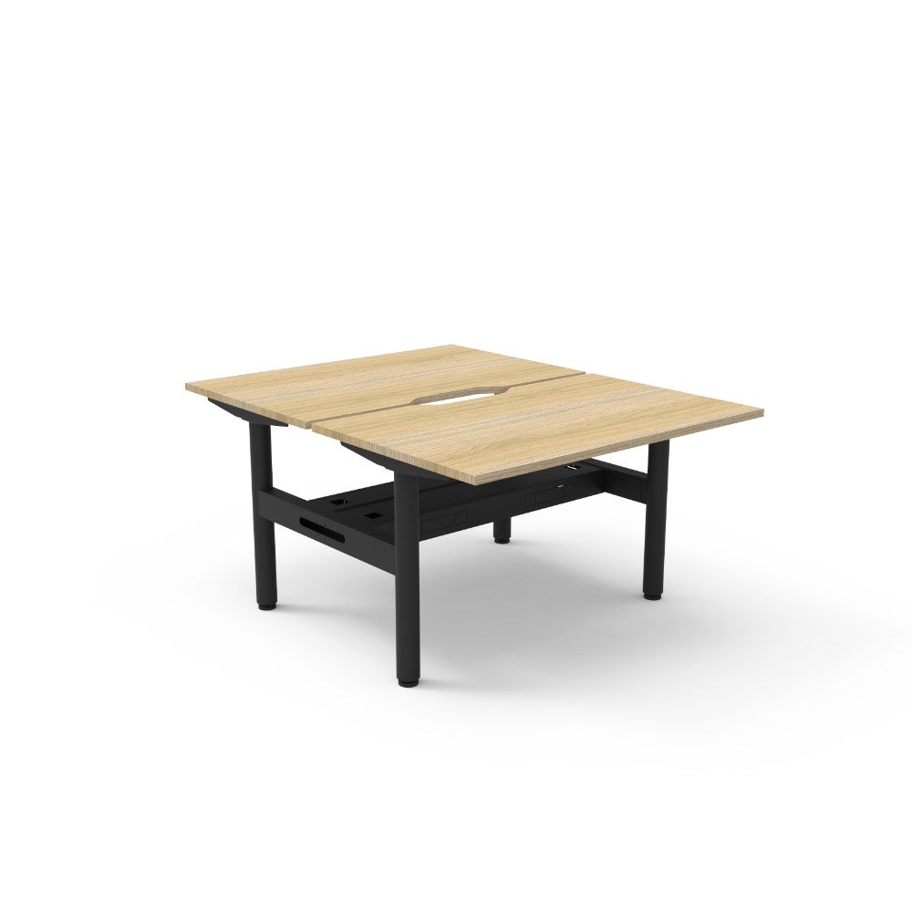 Natural Oak top Black Satin frame. Double sided workstation with cable tray. Overall Dimensions: 1200mW x 1500D x 730mmH. Per User Dimensions: 1200W x 750D x 730mmH. E0 rated 25mm top with rigid edging and 50mm diameter scallop cut out to rear. Powder coated underframe. Adjustable levelling feet. Can be customised with optional accessories like cable management solutions and privacy screens. 10 Year Manufacturer's Warranty. Delivery, installation and assembly charges may apply to furniture. Please enquire to confirm.