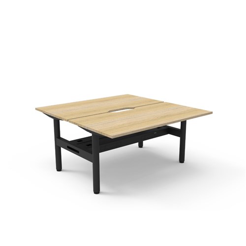 Natural Oak top Black Satin frame. Double sided workstation with cable tray. Overall Dimensions: 1500mW x 1500D x 730mmH. Per User Dimensions: 1500W x 750D x 730mmH. E0 rated 25mm top with rigid edging and 50mm diameter scallop cut out to rear. Powder coated underframe. Adjustable levelling feet. Can be customised with optional accessories like cable management solutions and privacy screens. 10 Year Manufacturer's Warranty. Delivery, installation and assembly charges may apply to furniture. Please enquire to confirm.