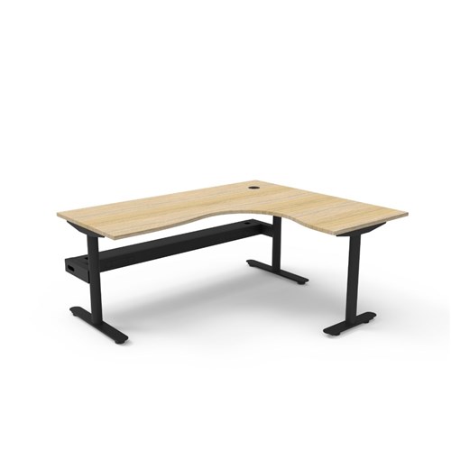 Natural Oak top Black Satin frame. Corner workstation with cable tray. Dimensions: 1800W x 1500W x 750D x 730mmH. E0 rated 25mm top with rigid edging and 80mm diameter cable entry with cover. Powder coated underframe. Adjustable levelling feet. 10 Year Manufacturer's Warranty. Delivery, installation and assembly charges may apply to furniture. Please enquire to confirm.