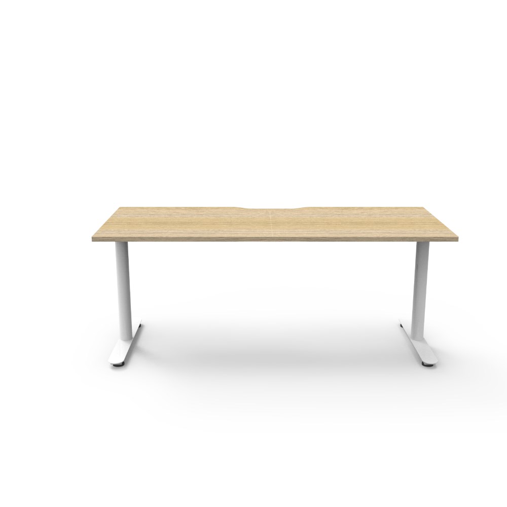 Natural Oak top White Satin frame. Dimensions: 1800W x 750D x 730mmH. E0 Rated 25mm top with rigid edging and 50mmD scallop cut out to rear. Powder coated underframe. Adjustable levelling feet. 10 Year Manufacturer's Warranty. Delivery, installation and assembly charges may apply to furniture. Please enquire to confirm.