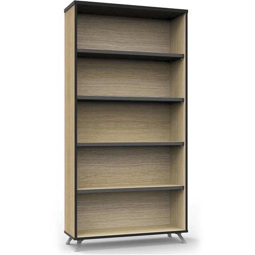 Rapidline Infinity Bookcase 900W x 315D x 1800mmH 4 Shelf Oak With Black Edge