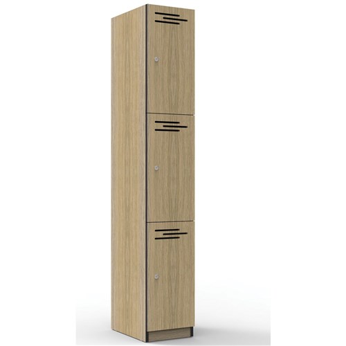 • Rapidline Infinity Melamine 3 Door Locker 305Wx455Dx1850mmH Oak with Black Edging