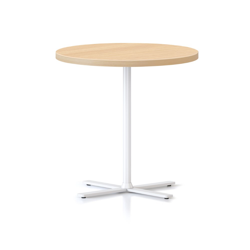 Dimensions: 600mm Diameter x 587mm High. 25mm thick table top. 4 leaf cross base powder coated underframe. Adjustable leveling feet. E0 enviroboard melamine worksurface. Note: Order with 457mmH Kolo table to create a nesting pair. 5 Year Manufacturer's Warranty. Delivery, installation and assembly charges may apply to furniture. Please enquire to confirm.