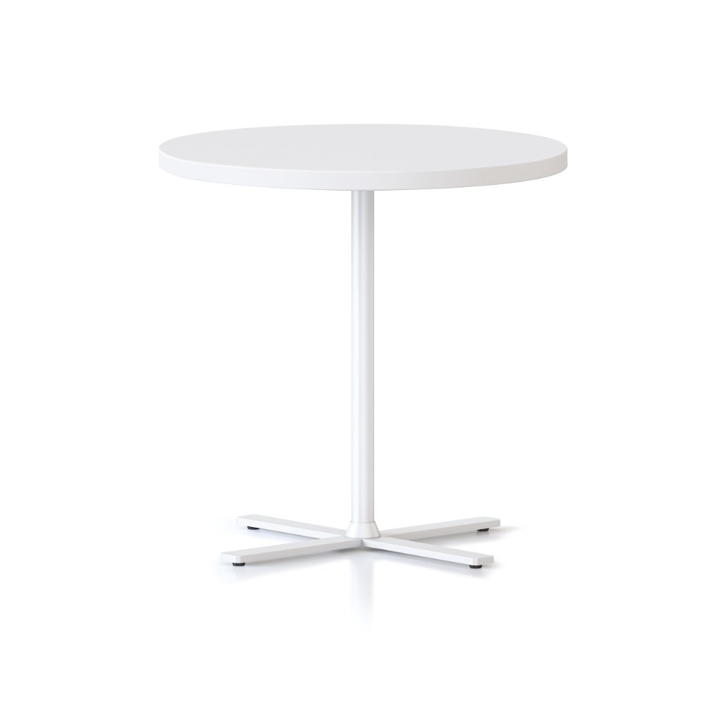 Dimensions: 600mm Diameter x 587mm High. 25mm thick table top. 4 leaf cross base powder coated underframe. Adjustable leveling feet. E0 enviroboard melamine worksurface. Note: Order with 457mmH Kolo table to create a nesting pair. 5 Year Manufacturer's Warranty. Delivery, installation and assembly charges may apply to furniture. Please enquire to confirm.