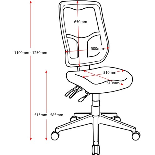 • Seat size of 510mm W x 510mm D, seat height of 515 - 585mm H.