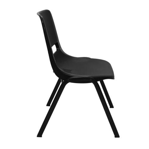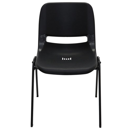 • Strong durable stacking chair with polypropylene shell and black powder coated underframe.