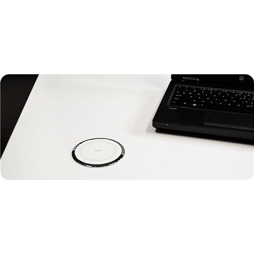 Charge your phone at your desk with wireless charging. Links to cable basket, adjoining power rail, wall starter or power pole kit. Fits into standard 80mm cable port. Charges QI compatible devices - not compatible with all Phones. 2 Year Manufacturer's Warranty.