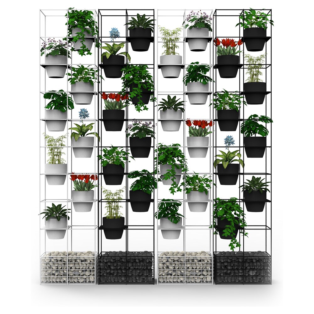 Includes 8 x 150mm diameter black pots and 20Kgs of polished black stones. Manufactured with concealed wall and floor mounting provisions. Plants not included. No assembly required. 5 Year Manufacturer's Warranty. Delivery, installation and assembly charges may apply to furniture. Please enquire to confirm.