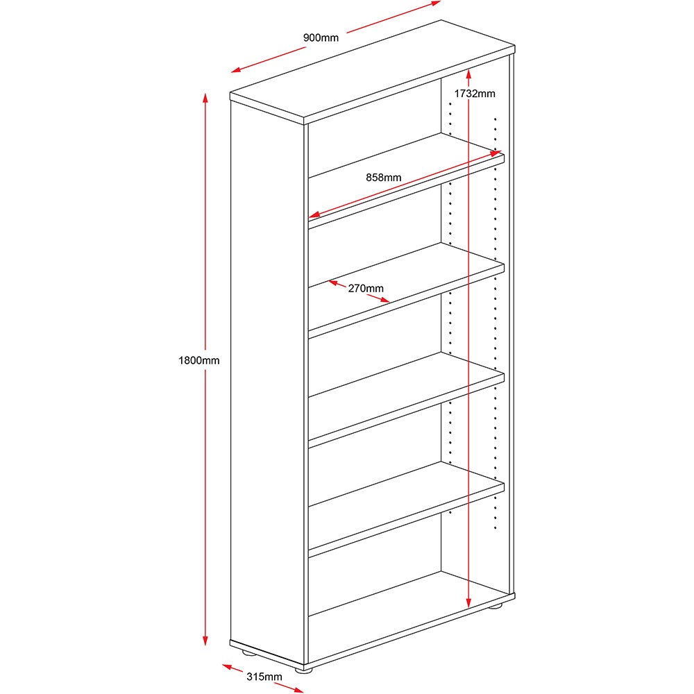Rapidline Rapid Worker Bookcase 4 Shelves 900W x 315D x 1800mmH Oak And Ironstone