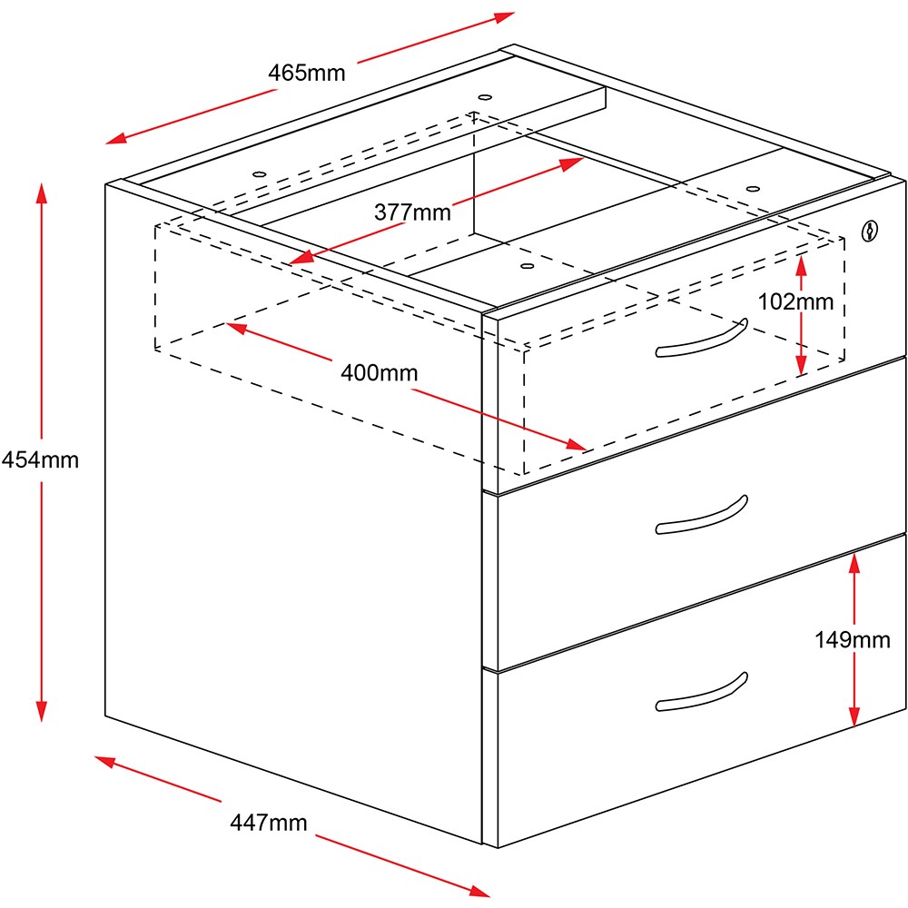 Rapidline Rapid Worker Fixed Pedestal 3 Drawer 465W x 447D x 454mmH Ironstone