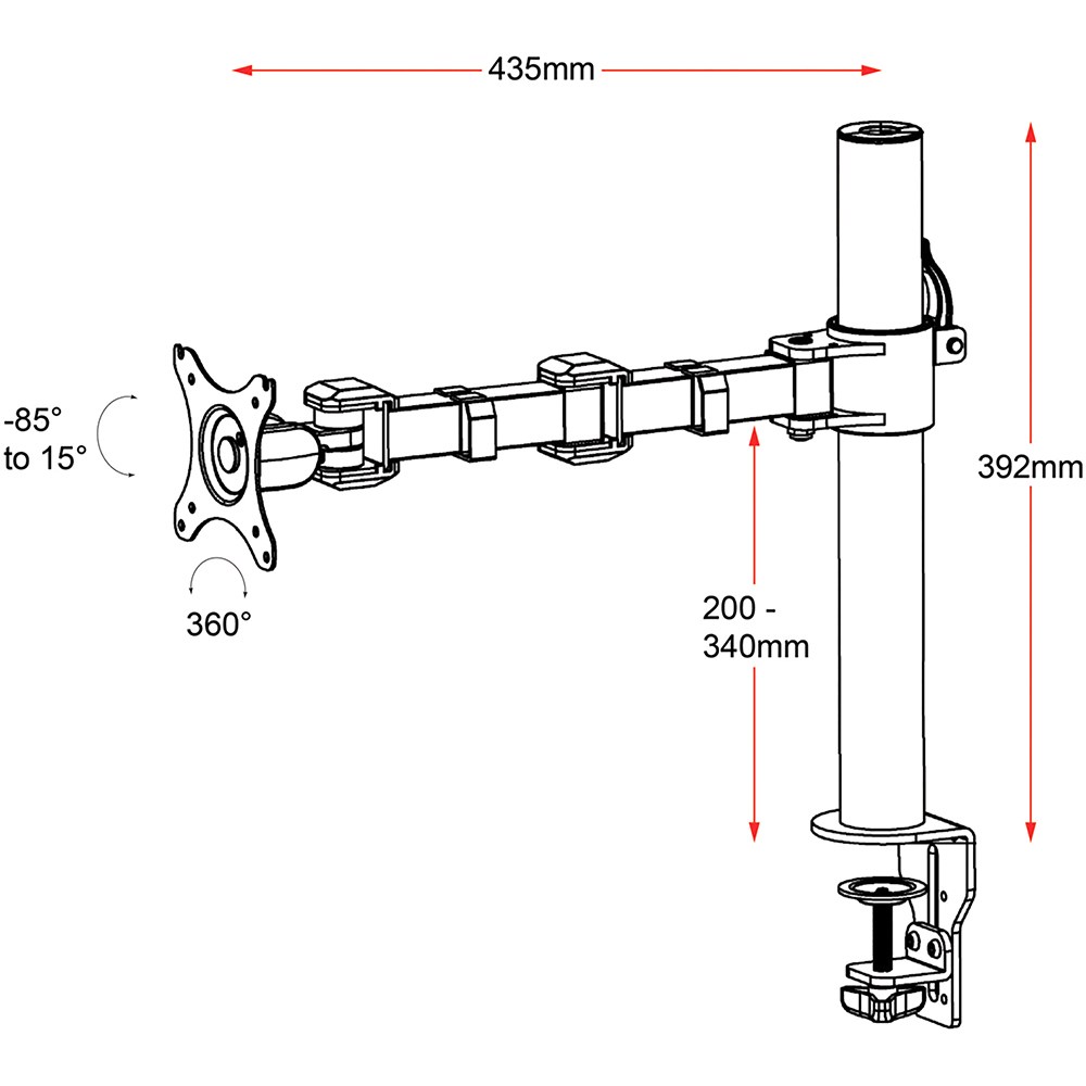 • 392mm centre pole height, 435mm arm reach.