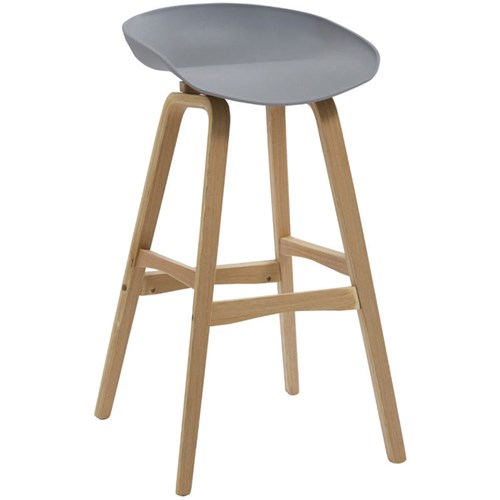 Rapidline Virgo Bar Stool Oak Coloured Timber Frame With Polypropylene Grey Shell Seat