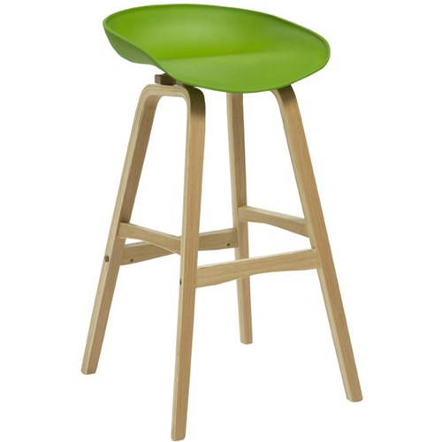 Rapidline Virgo Bar Stool Oak Coloured Timber Frame With Polypropylene Lime Shell Seat