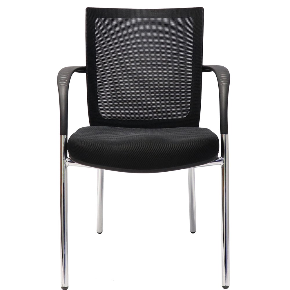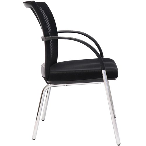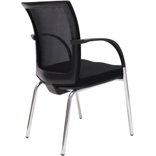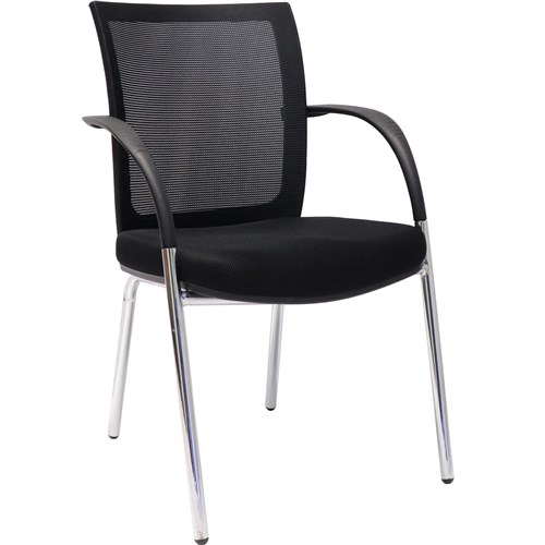 Ideal for a visitor or meeting chair. Chair Capacity: 120kg. Composition: fabric seat, mesh back, 4 leg chrome frame. Seat Width: 480mm. Seat Depth: 480mm. Back Height: 480mm. Seat Height: 480mm. Note: Delivery, installation and assembly charges may apply to furniture. Please enquire to confirm. 5 Year Manufacturer's Warranty.