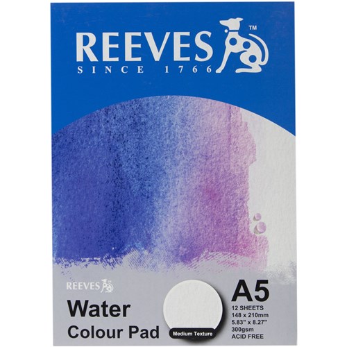 Reeves Water Colour Pad A5 300gsm Medium Texture 12 Sheets