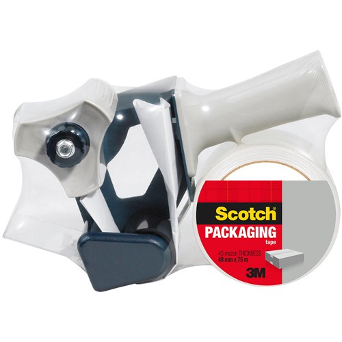 pistol grip tape dispenser & 75m roll of tape. 45 micron thick tape water-based acrylic adhesive. designed for lasting protection for general purpose jobs.