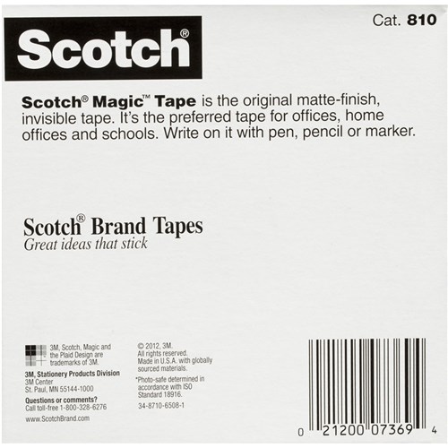 Mend it, seal it and secure it with this permanent matte tape. Non-yellowing. Can be written on and disappears when applied. Will not show up on faxes or photocopies and remains invisible over time.