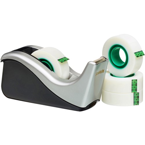The Scotch® Desktop Tape Dispenser C60 has a sleek wave design that complements any decor and an attached tape hub that cannot be lost. Value Pack with 4 rolls of Magic Tape.