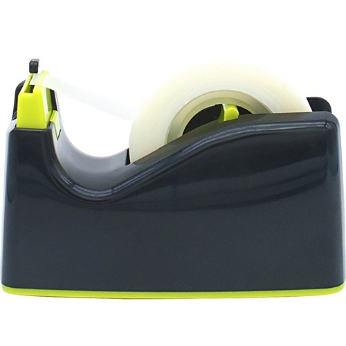 Suitable for use with tapes with a 25mm core. The safest dispenser for use by children. Tape is cut in one smooth swift motion. Easy to adhere to desk with double sided tape on bottom of unit. Includes one roll of premium invisible tape. Easily refillable.