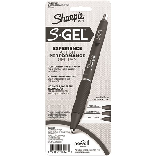 Sharpie Gel Pen Retractable 0.7mm Business Assorted Pack of 4