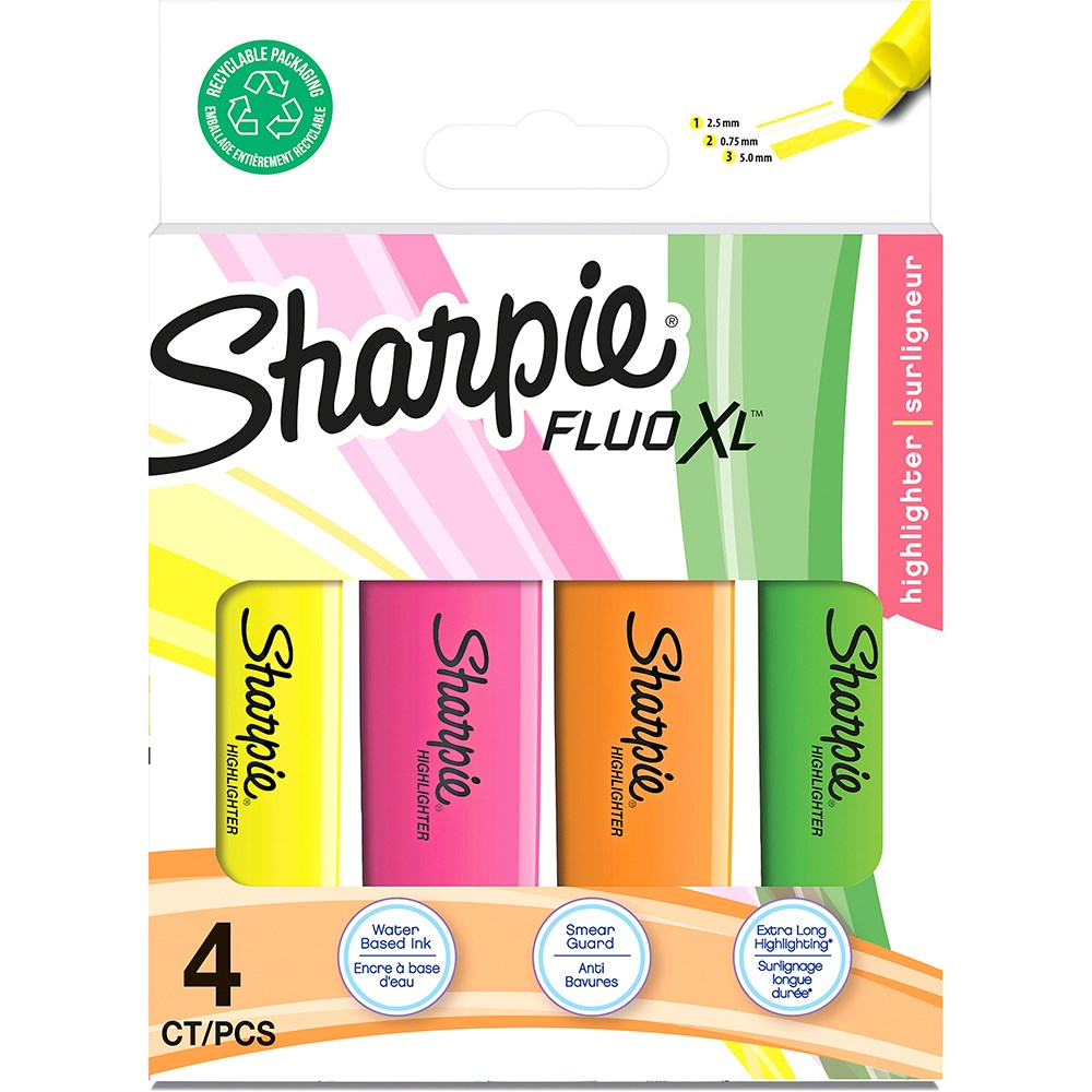 Sharpie Fluo XL Highlighter Marker Chisel Tip Assorted Pack of 4