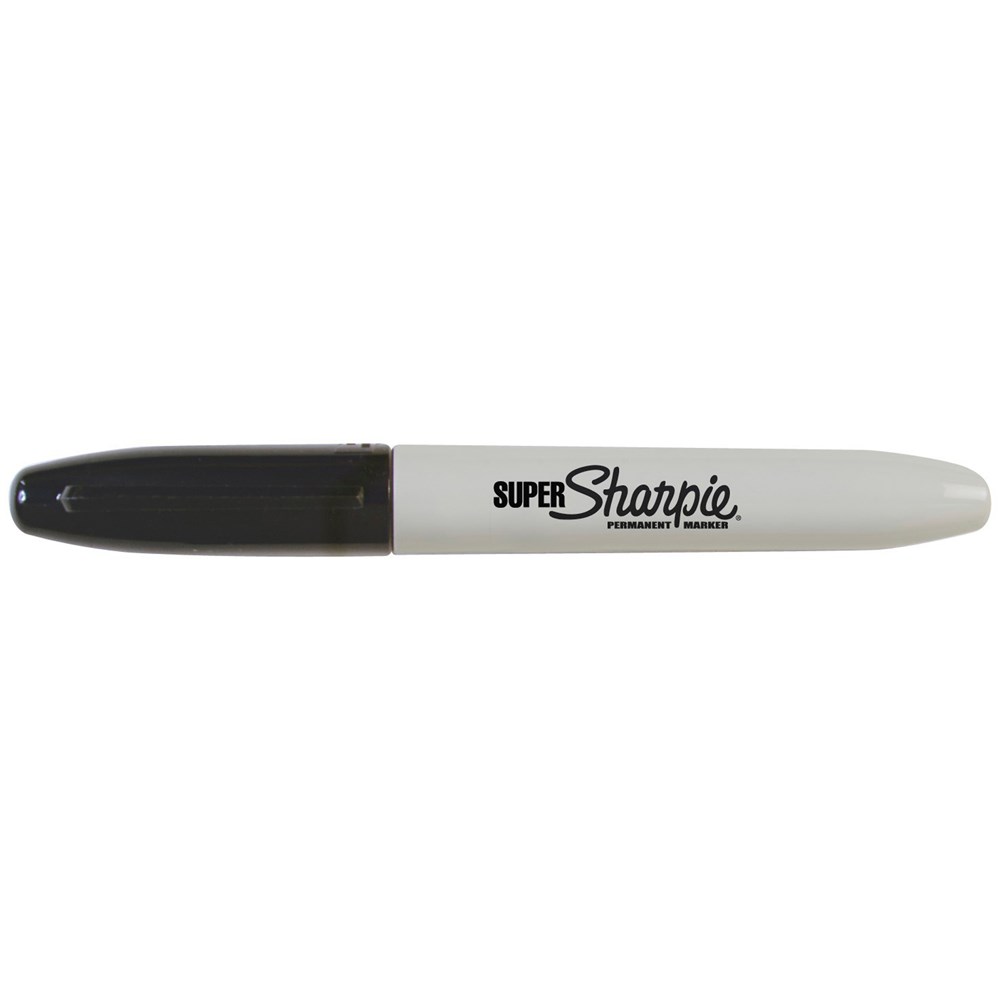 With a super-large ink supply, Sharpie Super Fine Point Markers let you express yourself to your heart's content. Made to write practically everywhere, vivid Sharpie markers eliminate dull and boring. Super large ink supply for extended life. Proudly permanent ink marks on paper, plastic, metal, and most other surfaces. Intensely brilliant colors create eye-popping, vibrant impressions. Remarkably resilient ink dries quickly and resists both fading and water; AP certified. Tip size: 1.0mm Color: Black