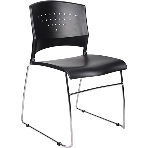 Stadium Stacker Meeting Chair Chrome Sled Base Black Poly Seat and Back