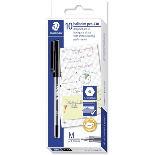 STAEDTLER BALLPOINT PEN Stick 430 Medium Black Box of 10