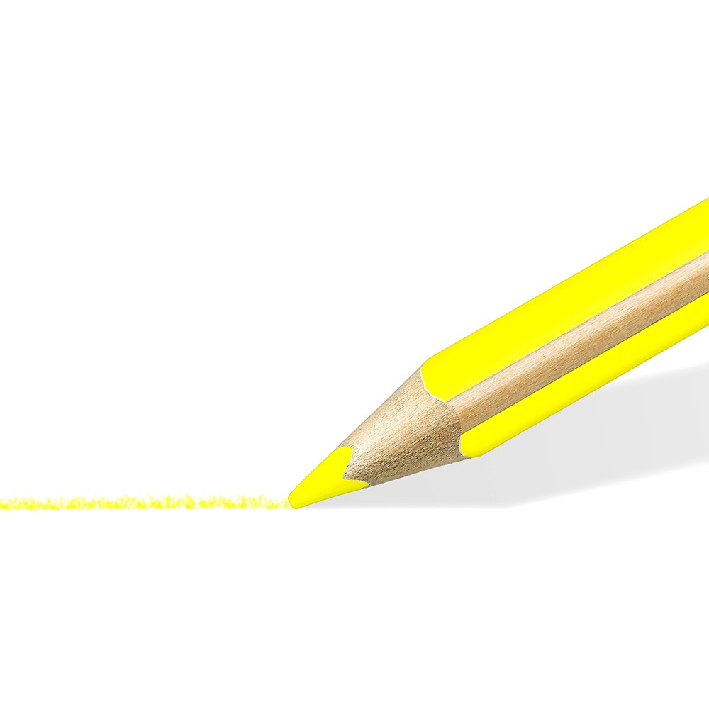 Wood cased highlighter pencil in jumbo triangular shape for relaxed and easy use. Neon lightfast wax lead. No bleeding even through thin paper like newspaper or bible passages. PEFC - Wood from certified sustainability managed forests.