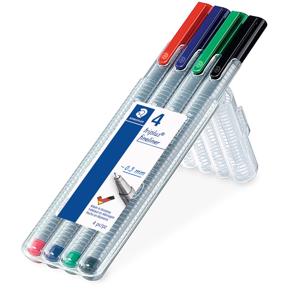 Staedtler 334 Triplus Fineliners 0.3mm Assorted Wallet of 4