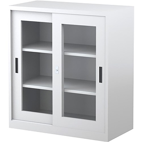 • Steelco Sliding Glass Door Cabinet 2 Shelves 914W x 465D x 1015mmH Silver Grey