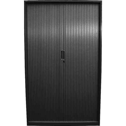 Steelco Tambour Door Cupboard Includes 5 Shelves 900W x 463D x 2000mmH Black Satin