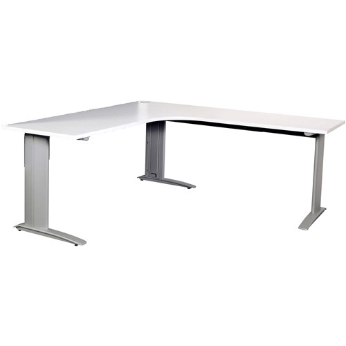 Summit Corner Desk Silver Steel Frame With Cable Beam 1500Wx1500Wx750D White Top