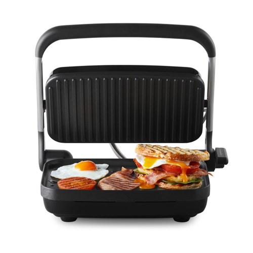 • The non-stick coating and the curved corners of the cooking plates make wiping up oil and crumbs effortless.