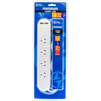The Brute Power Co. 4 Socket + 2 USB Ports Powerboard White