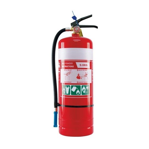 Complies with AS/NZS 1841.1:2007. 9.0kg model powder coated mild steel cylinders. Forged brass discharge valve powder coated handle and trigger.