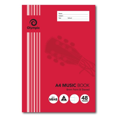 Olympic Music Book M848 A4 8mm Feint & Staved 48 Page