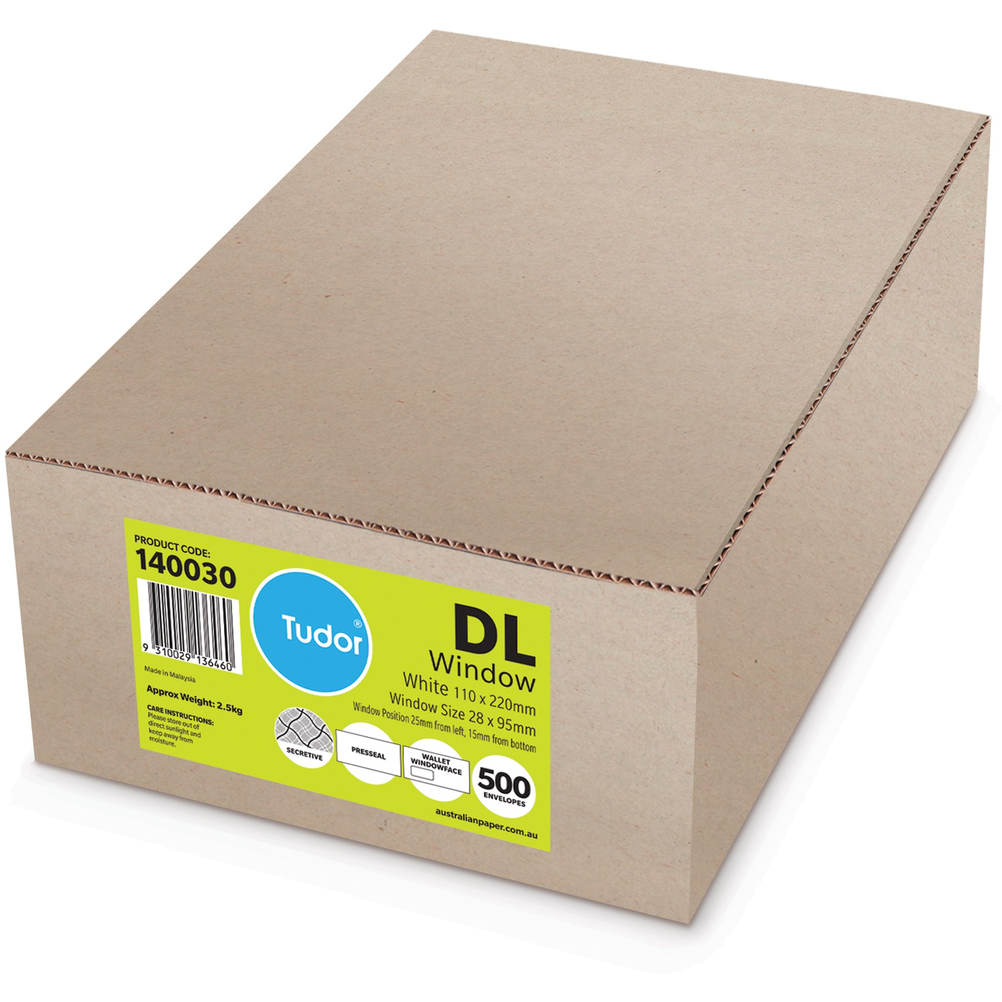 Tudor has been manufacturing high quality products for generations. For an extensive range of envelopes that deliver, trust Tudor. Presseal Closure Australian Made Australian Forestry Standard (AS 4707) Certified Manufactured using Carbon Neutral paper certified under the NCOS Window Position 3 (28x95mm 25L:15B)