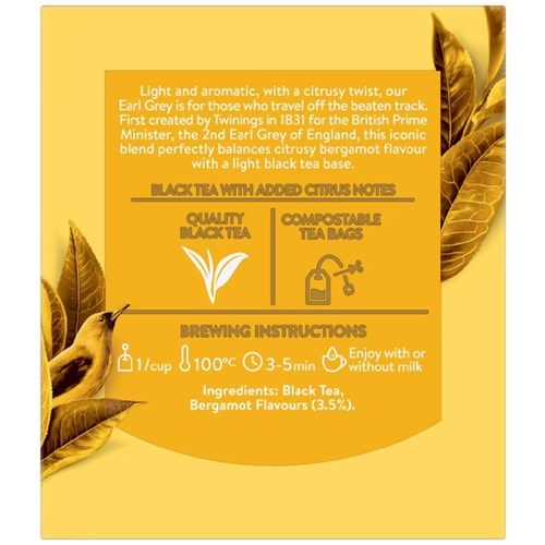 This tea is light, aromatic and made from a unique blend of citrus and orange. Store the tea in a cool dry place away from odours.