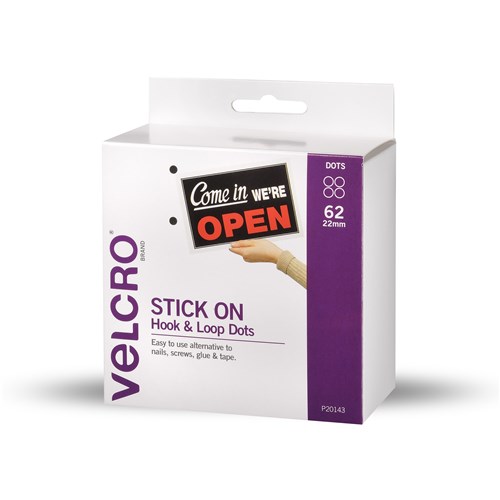 Velcro Brand Stick On Hook & Loop 22mm 62 Dots With Dispenser White