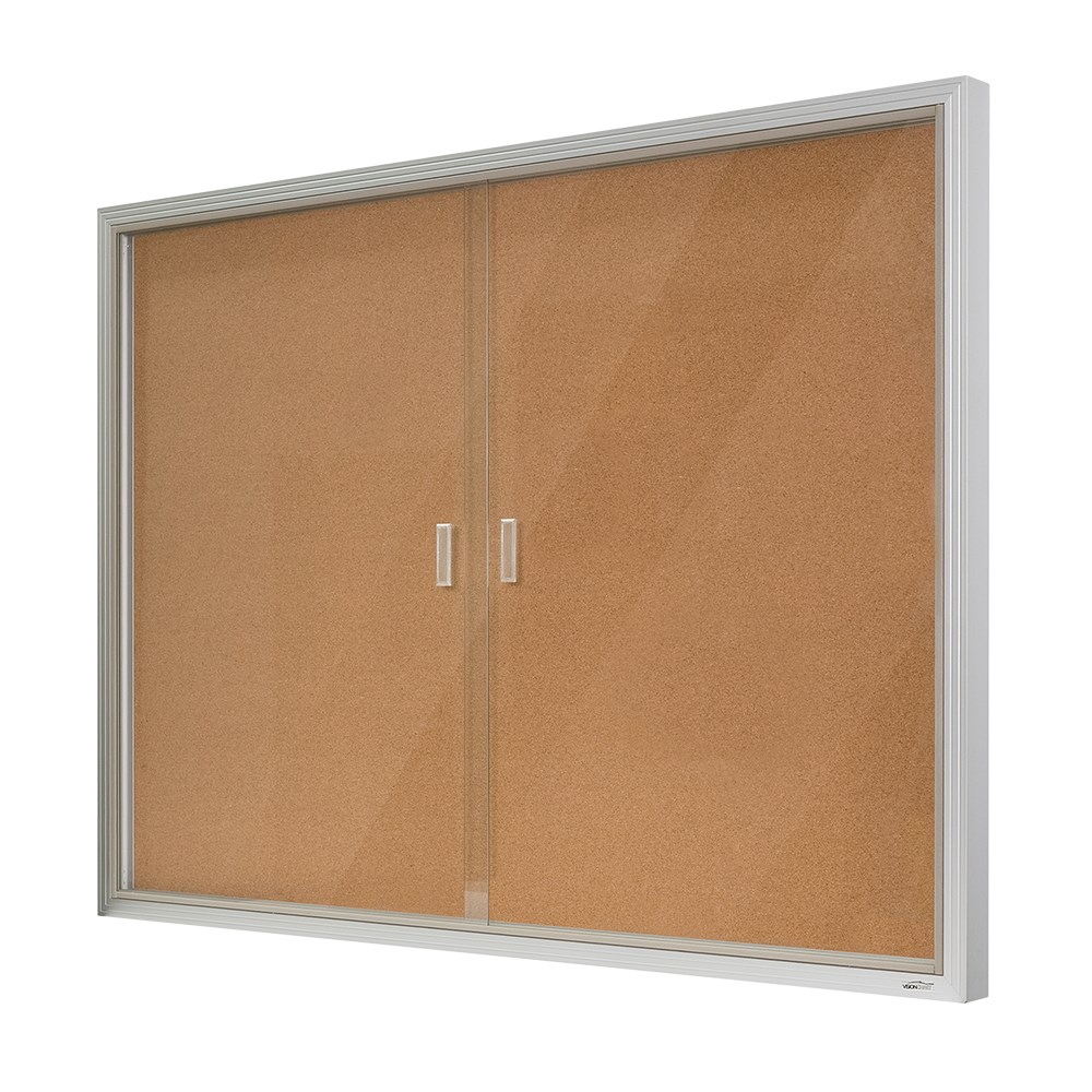 Visionchart Be Noticed Sliding 2 Door Notice Case 1220W x 48D x 915mmH Silver/Cork