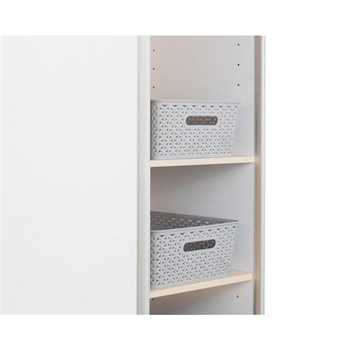 Dimensions: 840W x 374D x 1800mmH. Includes 10 shelves and 10 baskets. Easily movable double sided magnetic whiteboard with storage that is split into two making it perfect for shared and adaptable learning environments. Easy pull handle on either end. Four large easy glide castors with 2 lockable. Delivery, installation and assembly charges may apply to furniture. Please enquire to confirm.