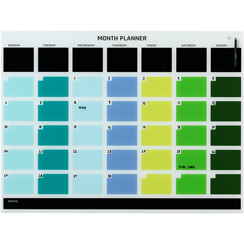 Danish designed NAGA Magnetic Glass MONTH PLANNER. Supplied with 2 dry wipe markers & 2 strong magnets and wall fixings. Write on. Wipe off. Lifetime erasing warranty. Delivered in a stylish giftbox.