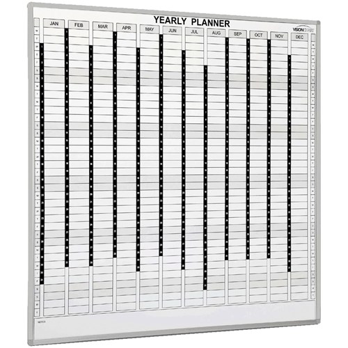 Perpetual Yearly Planner Whiteboard that gives you organisation at a glance. 1 Year Surface Warranty. Supplied with Date Strips.