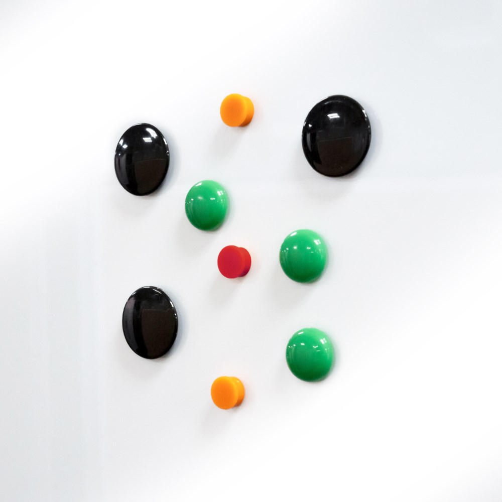 • Colourful magnets for pinning items to whiteboards, cabinets, fridges or any metallic surface.