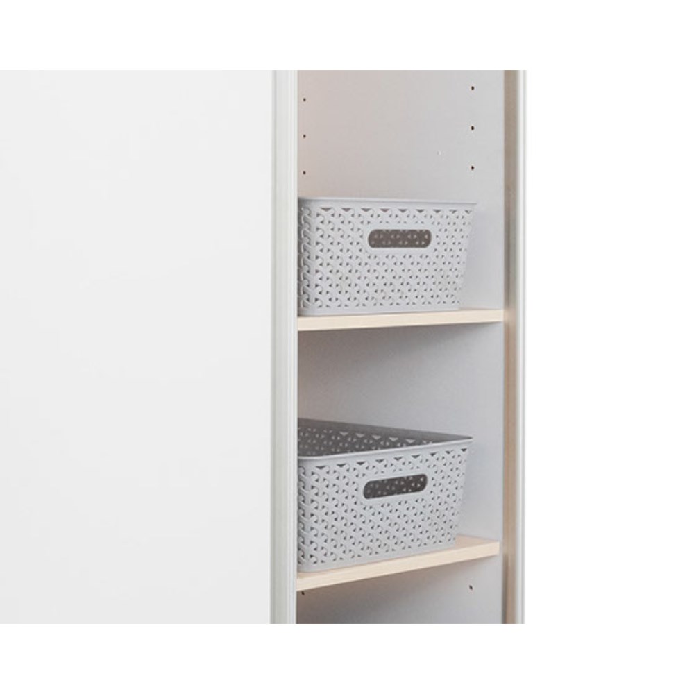 • Each end has two adjustable shelves giving 8 compartments in total for storage.