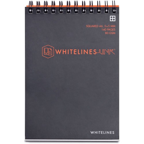 WHITELINES A4 4 SUBJECT NOTEBOOK It's simple: dark lines distract, white lines don't. Whitelines Link brings together physical and digital notes. The clever scanner-app in combination with Whitelines Link paper makes it super easy to capture, save and share your notes. (see information link below). A6 105 x 148mm. 140 Page/70 Sheet. 8mm Ruled. 80gsm. Double Spiral Binding Top Bound FSC Certified Whitelines Link Compatible Free Smartphone App