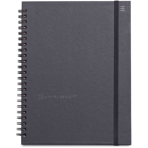 WHITELINES A5 HARDCOVER NOTEBOOK It's simple: dark lines distract, white lines don't. Whitelines Link brings together physical and digital notes. The clever scanner-app in combination with Whitelines Link paper makes it super easy to capture, save and share your notes. (see information link below). A5+ 210 x 163mm. 160 Page/80 Sheet. 7mm Ruled. Pages 100gsm with perforation (A5 tear out). Double Wiro Binding Elastic Cord Closure Pocket for notes inside back cover FSC Certified Whitelines Link Compatible Free Smartphone App